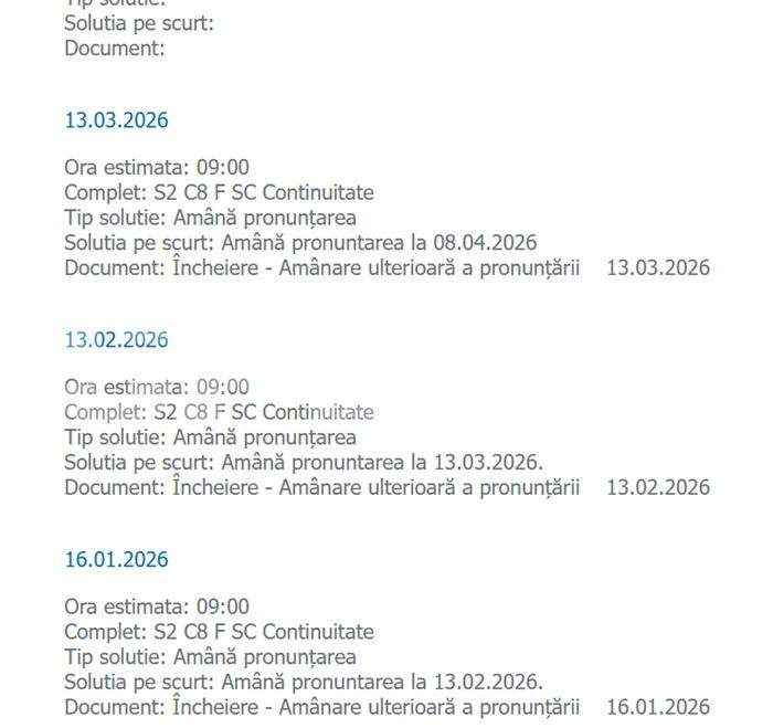 - Curtea de Apel București amână pronunțarea, lunar, din luna mai a anului trecut