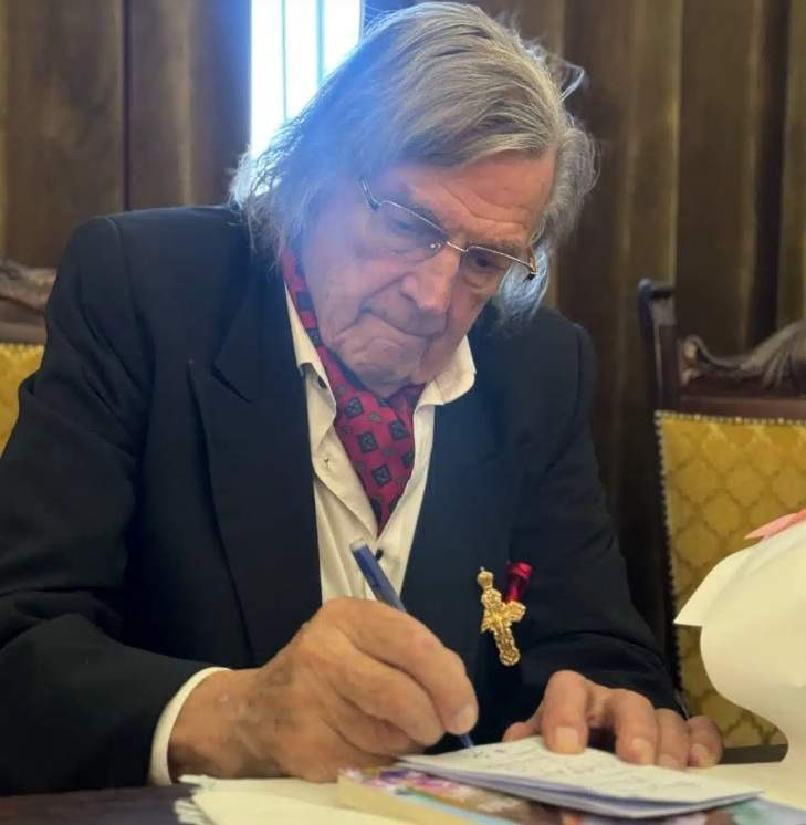 Deși se deplasează cu ajutorul unui baston, marele actor și-a păstrat zâmbetul inconfundabil și eleganța care l-au caracterizat întotdeauna. Îmbrăcat elegant în costum negru și accesorizat cu o o eșarfă roșie, Florin Piersic a impresionat prin prezența sa, chiar dacă starea de sănătate nu-i permite să mai revină pe scenă.