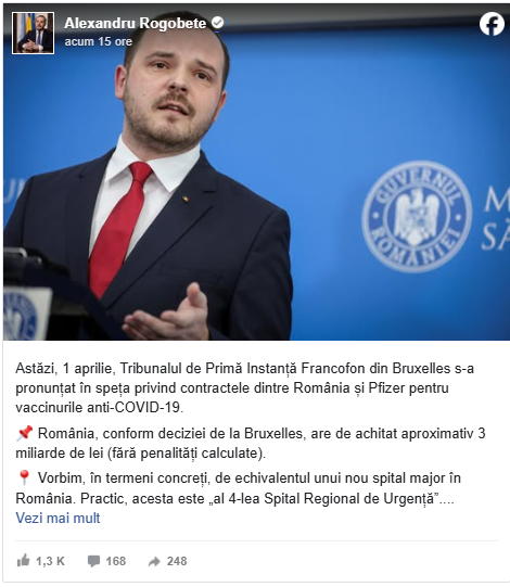 Alexandru Rogobete, ministrul Sănătății, a declarat că strategia de vaccinare împotriva COVID-19 în România a fost una nereușită, subliniind că implicarea excesivă a politicienilor în comunicarea publică a afectat încrederea populației.