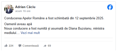 Sursa: Adrian Câciu dă de pământ cu noua conducere de la Apele Române și cu ministra Buzoianu pentru criza apei