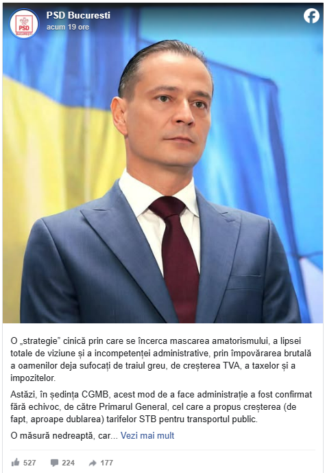 Astăzi, în ședința CGMB, acest mod de a face administrație a fost confirmat fără echivoc, de către Primarul General, cel care a propus creșterea (de fapt, aproape dublarea) tarifelor STB pentru transportul public.