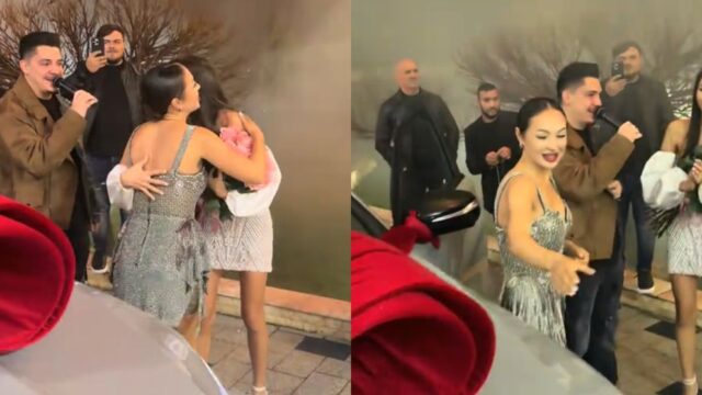 Cei doi interpreți au surprins momentul pe rețelele de socializare, unde au distribuit imagini și clipuri din timpul petrecerii, exprimându-și uimirea față de darul primit de tânăra de 18 ani.