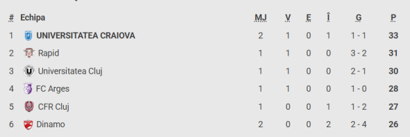 Clasamentul din play-off, după Dinamo – Universitatea Craiova 0-1
