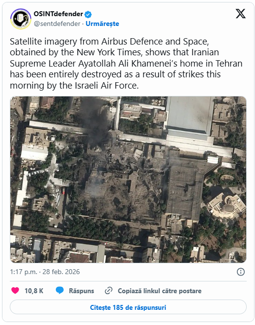 Au fost făcute publice imagini din satelit care arată că palatul din Teheran al ayatollahului Khamenei a fost distrus în totalitate în urma atacurilor israeliene.