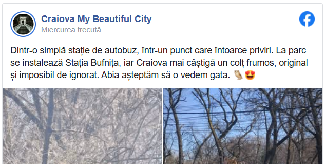 „O nouă stație de autobuz creată de Eco Urbis a fost montată în zona Parcului Romanescu. Sperăm să se înscrie curând printre obiectivele agreate de craioveni și să îi convingă pe cât mai mulți să circule cu autobuzul. În curând vor apărea și alte stații de autobuz atractive, în diferite colțuri ale orașului, executate de Secția Creație a Eco Urbis”, a transmis edilul.