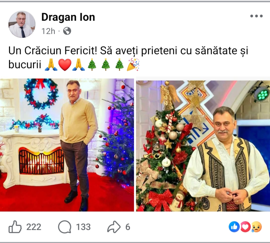 Interpretul Ion Drăgan a fost găsit mort în această dimineață la locuința sa din comuna Bălești. Avea 54 de ani iar familia bănuiește că a suferit un infarct în somn. Gheorghe Porumbel, directorul Ansamblului Profesionist Doina Gorjului, susține că dirijorul orchestrei a vorbit ultima dată cu Ion Drăgan după miezul nopții, când acesta i-a urat Crăciun fericit, era fericit și se bucura de sărbători alături de familie. A și postat un mesaj pe pagina sa de Facebook, cu 12 ore in urmă.
