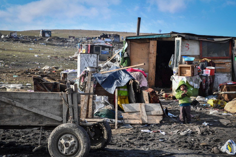 Aşezarea romă improvizată, numită Pata Rât, există de zeci de ani. Locuitorii îşi petrec zilele căutând obiecte de valoare printre mormanele de gunoi din groapa de gunoi. Pe lângă aşezarea existentă, autorităţile locale au mutat cu forţa familii în această zonă.