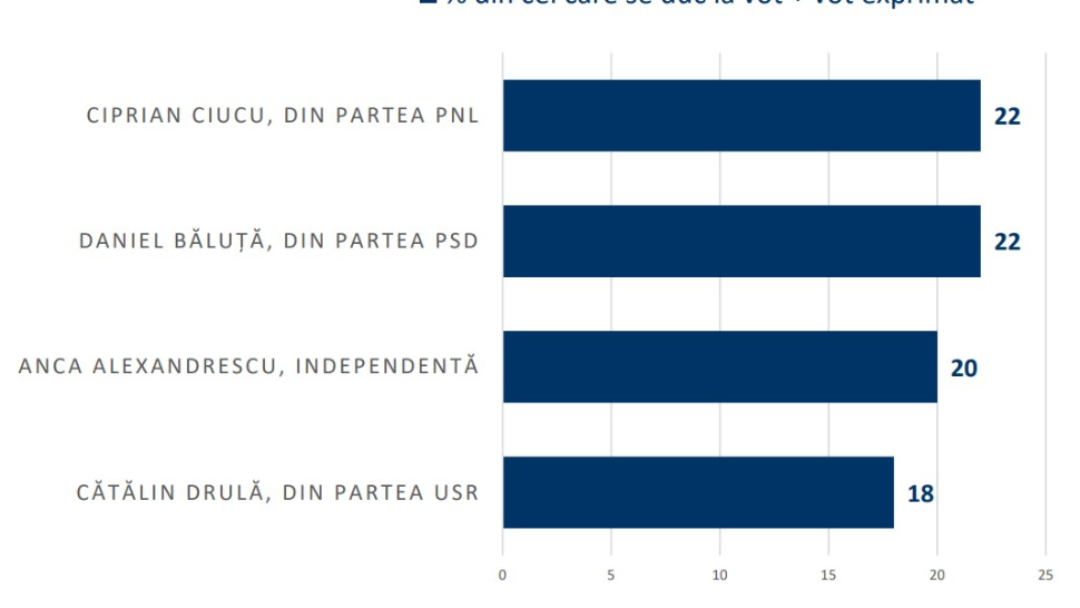 Un nou sondaj aruncă în aer așteptările și calculele politice ale momentului. Potrivit datelor, candidata Anca Alexandrescu se apropie semnificativ de fruntea clasamentului, fiind la o diferență extrem de mică, de doar un procent, față de candidații Daniel Băluță și Cătălin Drulă. Rezultatul indică o cursă mult mai strânsă și mai imprevizibilă decât se anticipa.